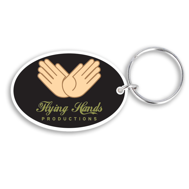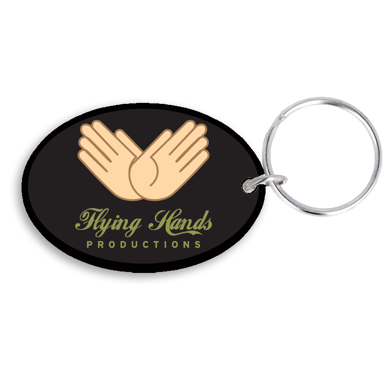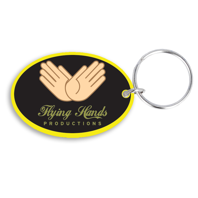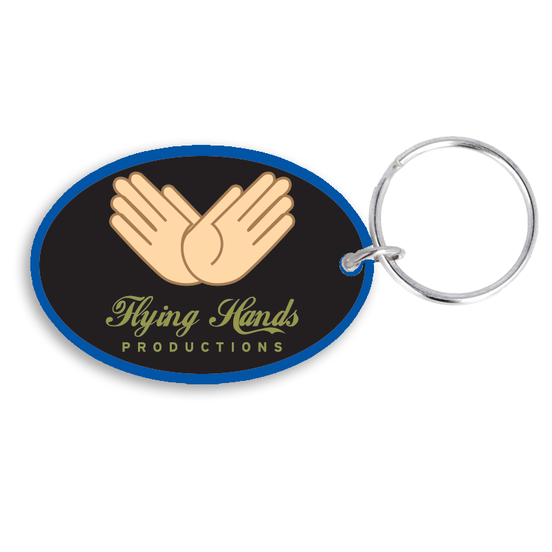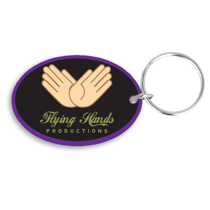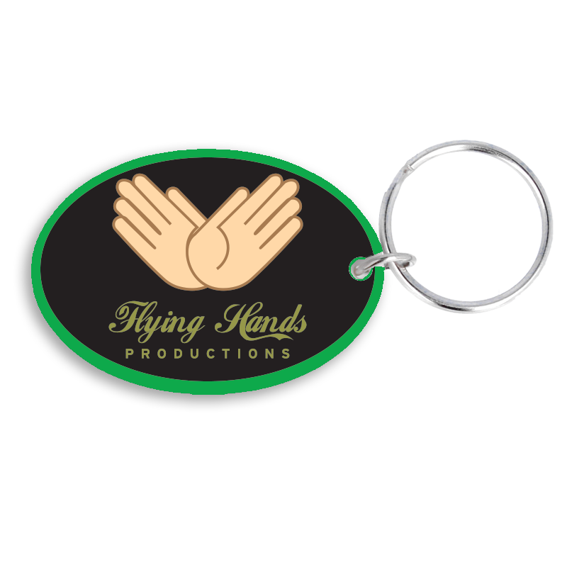 The 50mm oval keyring is supplied with split ring and jump ring fitting. It is made in the UK from recycled plastic and digitally printed in full colour as standard.