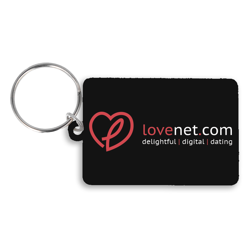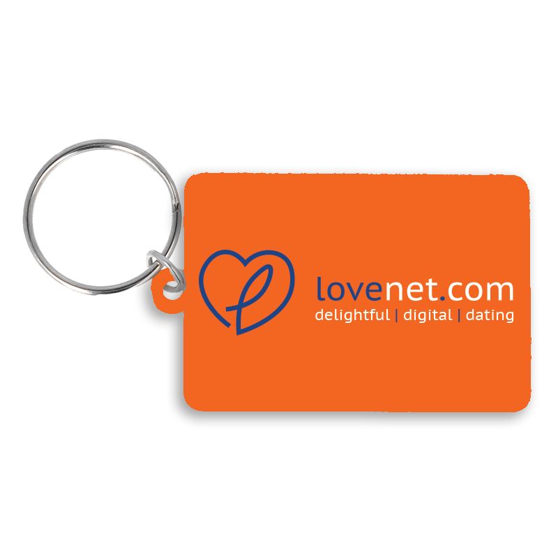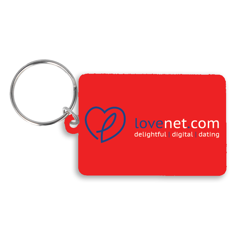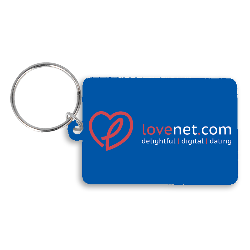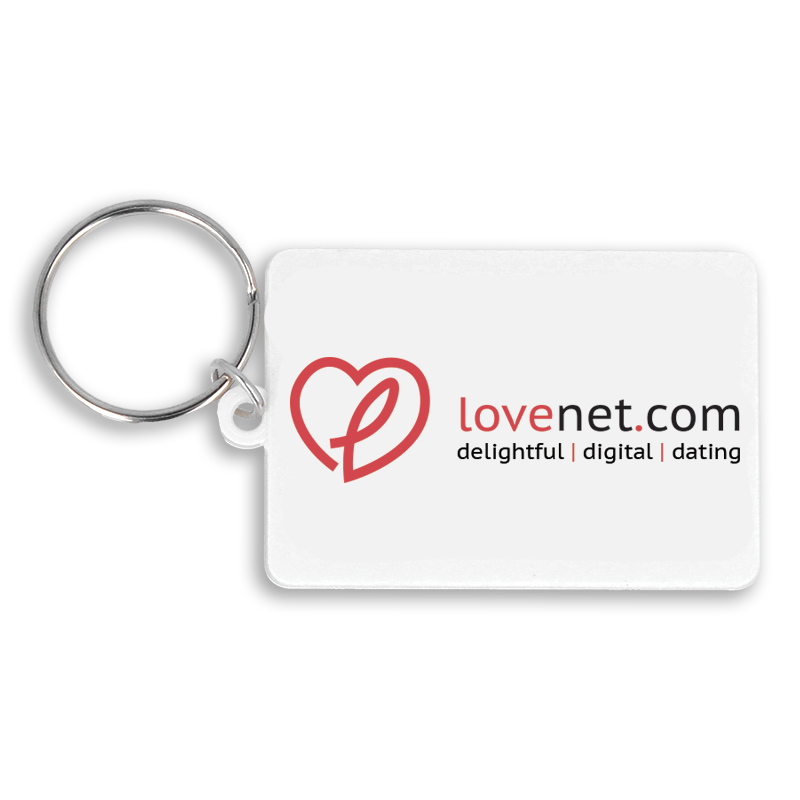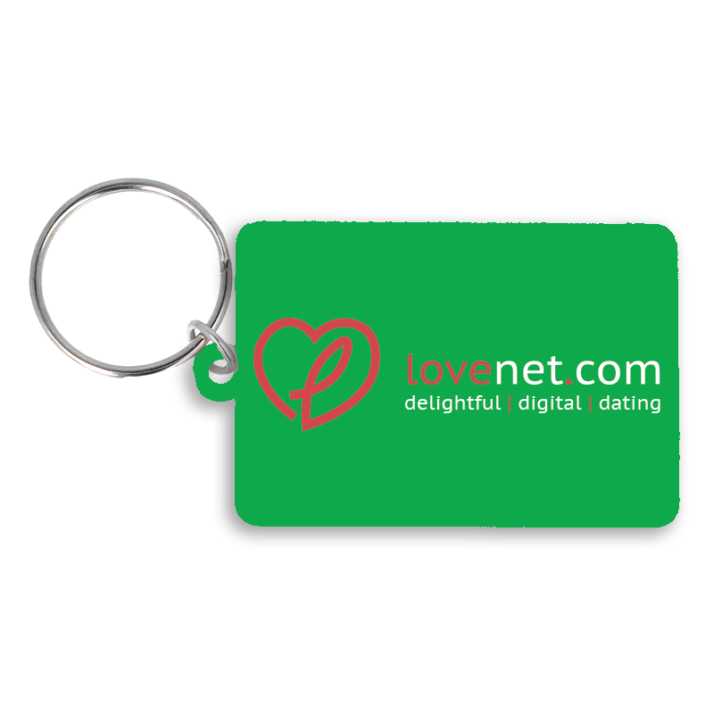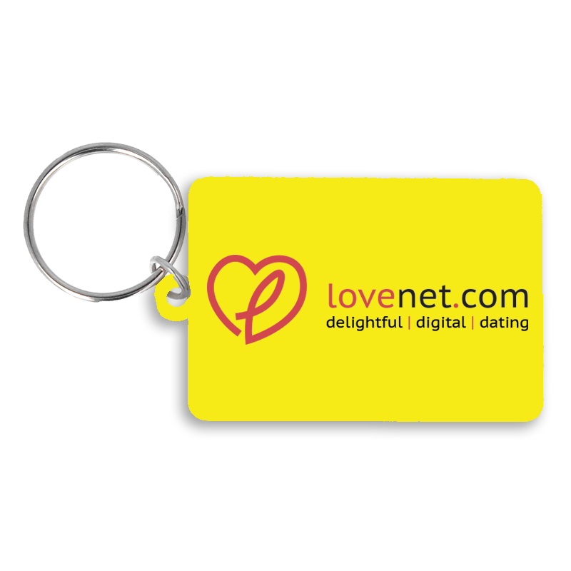 A recycled 55mm rectangle keyring, supplied with split ring and jump ring fitting. It is made in the UK from recycled plastic and digitally printed in full colour as standard.