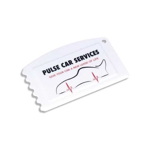 Recycled Plastic Credit Card Ice Scraper manufactured in the UK. Comes in eight possible colours and is digitally printed up to full colour as standard,